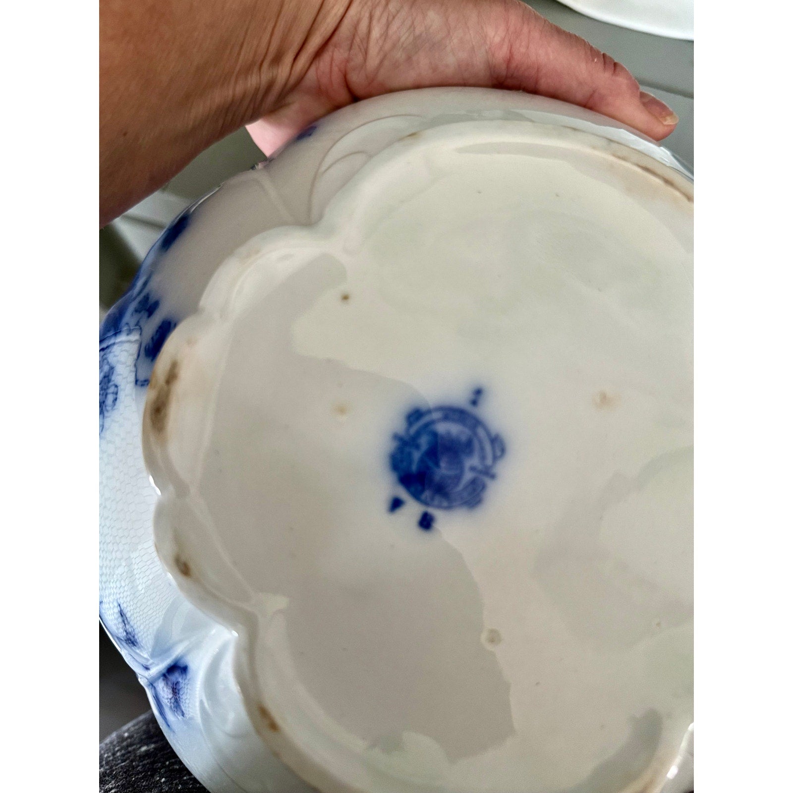 WH Grindley is well known for its flow blue pottery which is a type of transferware with a deliberately blurred or "flowed" cobalt blue glaze.