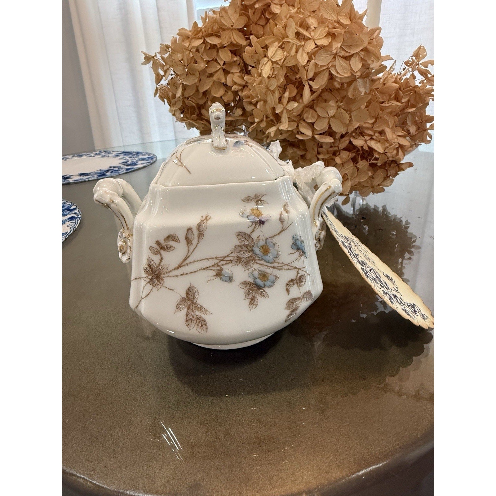 Antique Limoges Haviland Hand Painted blue Color Floral Bouquet Tureen Good Cond.