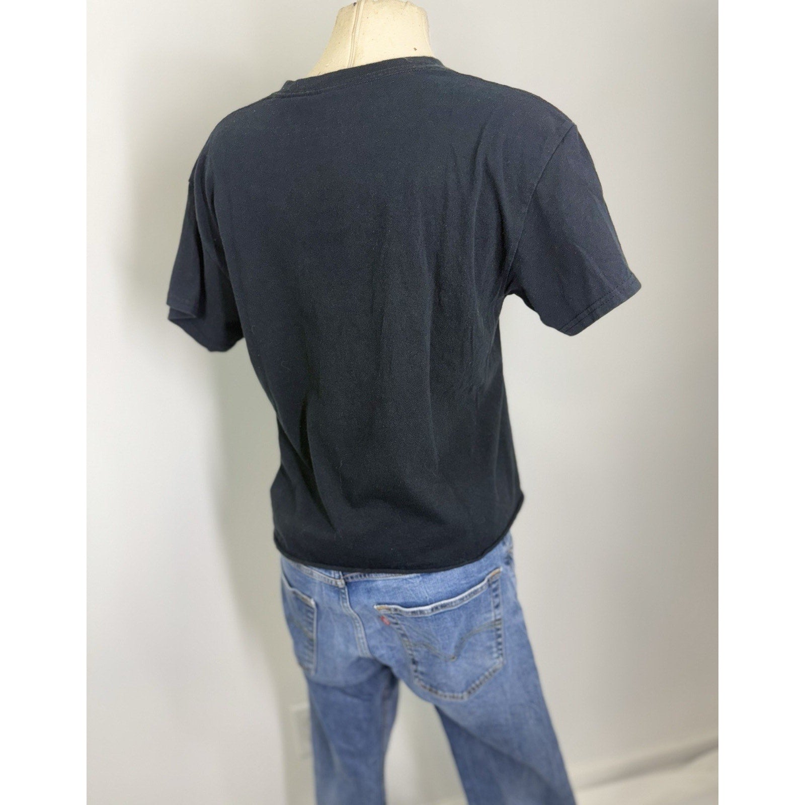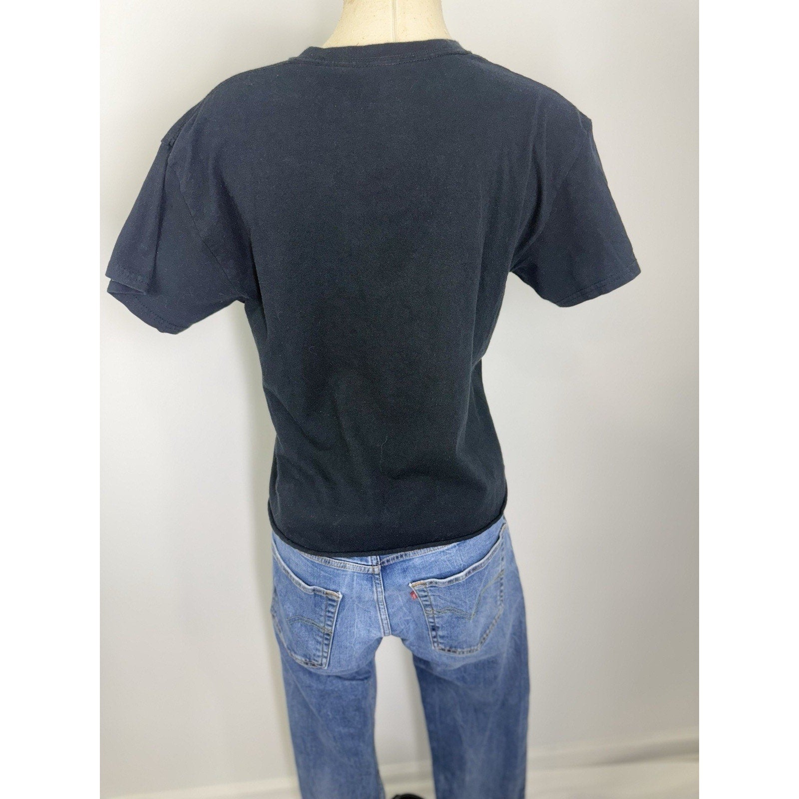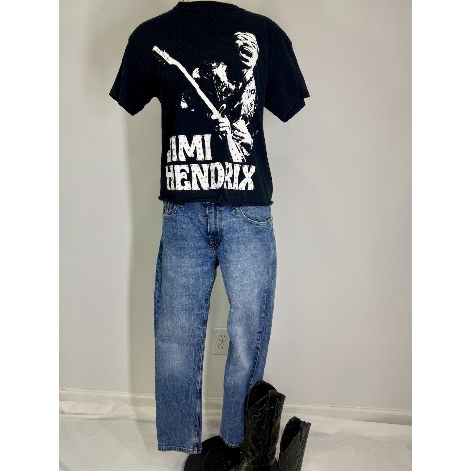 This UPCYCLED authentic and rare upcycled product is a black women's T-shirt featuring rhinestone accents, representing the Jimi Hendrix brand. It is machine washable and has a regular fit, suitable for all seasons. The cropped rolled hem style and 70s rock theme make it a versatile and stylish addition to any wardrobe, with a casual sleeve design perfect for year-round wear. Made in Bangladesh, this heavyweight shirt is a must-have for fans of music and fashion, combining comfort and flair for a unique look.