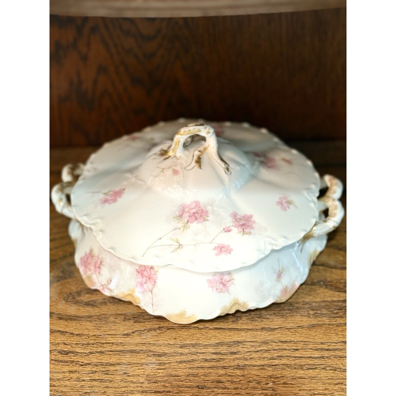 Haviland &Co M&G Limoges pink floral and gold covered bowl