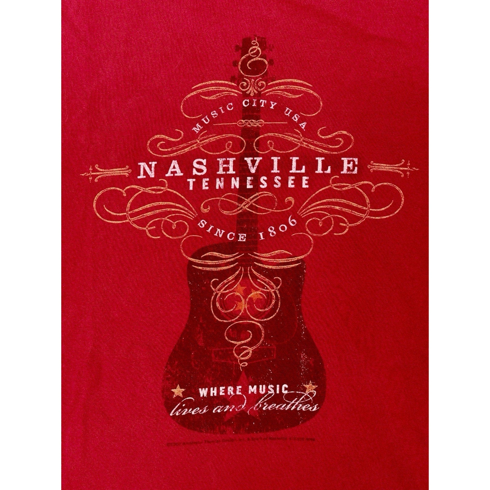 This Vintage 90s Nashville Music city USA T-Shirt in size Large is a single-stitched, crew neck shirt made of cotton. The black shirt features a solid pattern with short sleeves and a regular fit, perfect for the 90s theme. Manufactured in the United States during the 1990s, this T-shirt is machine washable and is a cool addition to your bar attire! The brand Hazel adds a touch of nostalgia to this timeless piece of men's clothing.