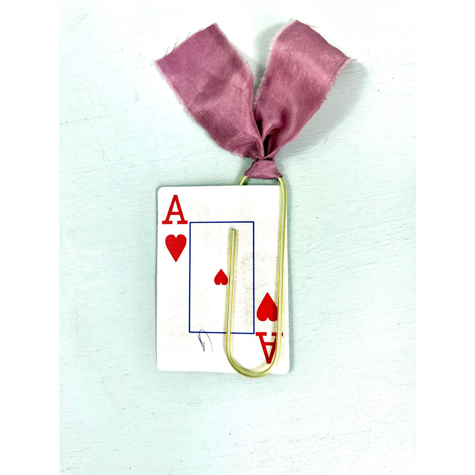 The ribbon bookmark features a playful playing card design, perfect for marking your place in your favorite book. Both pieces are in excellent condition and ready to bring joy to their new owner.