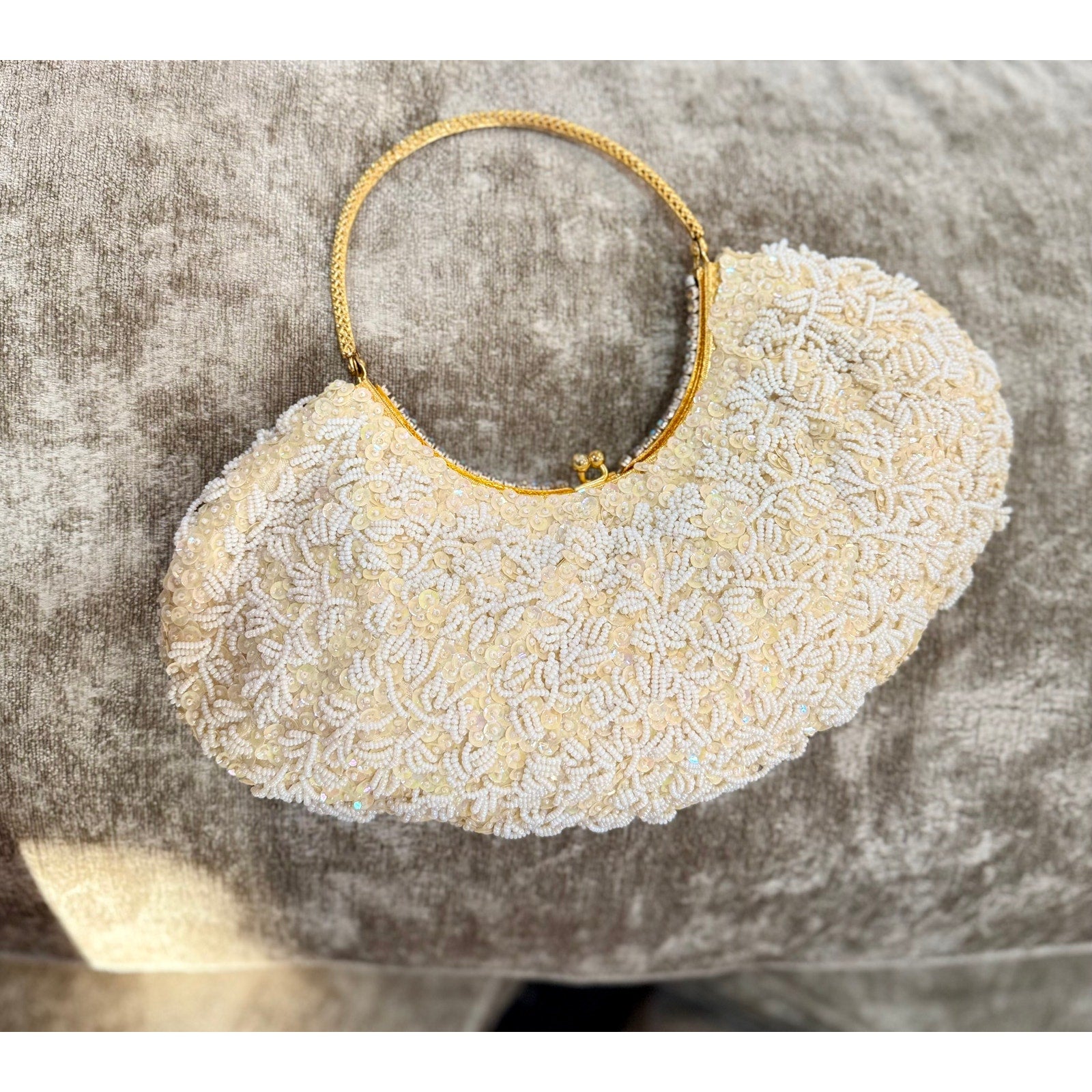Perfect for special occasions, this bag is sure to turn heads and complement any evening ensemble. The intricate beadwork and rhinestone detailing showcase the craftsmanship and attention to detail that make this bag a truly unique find.
