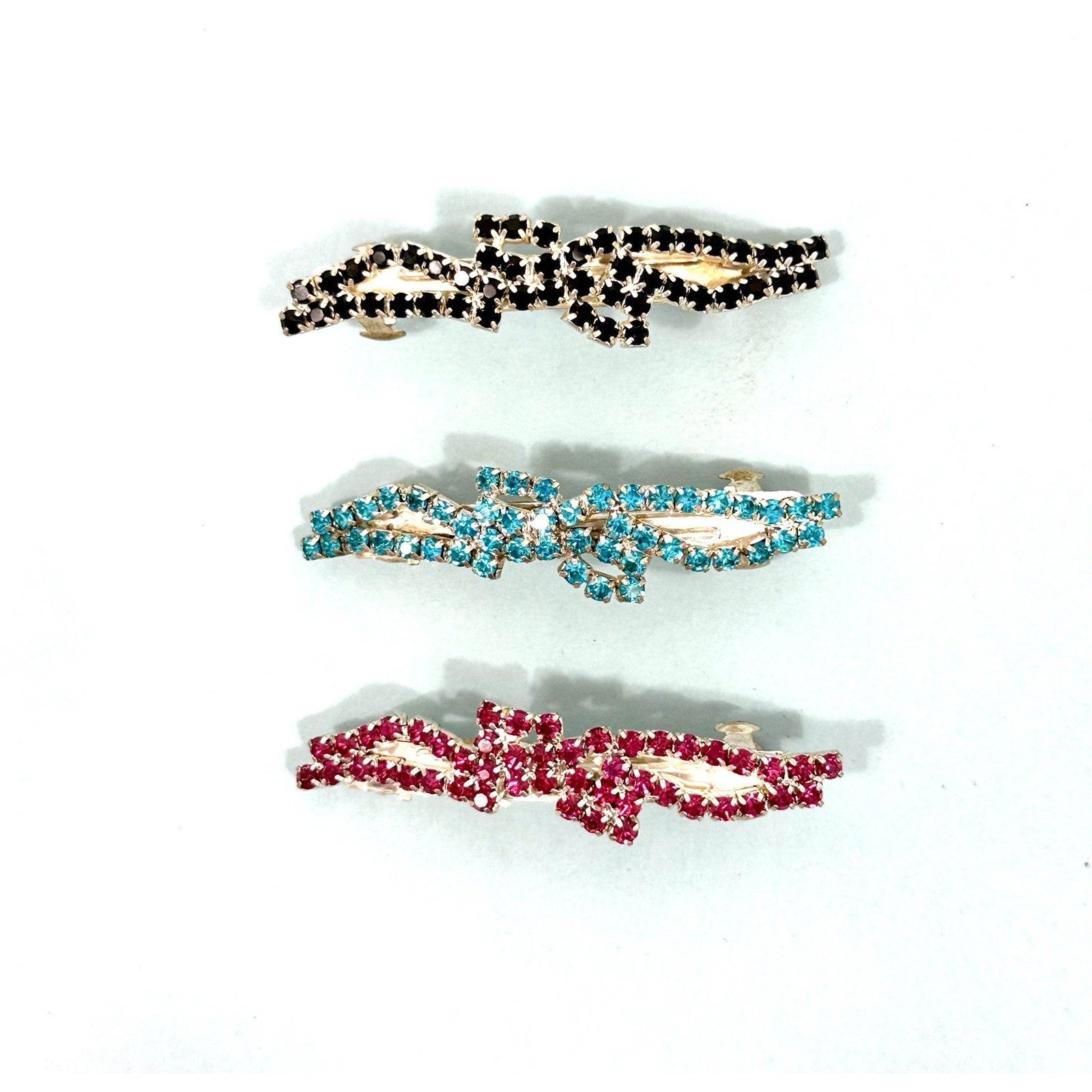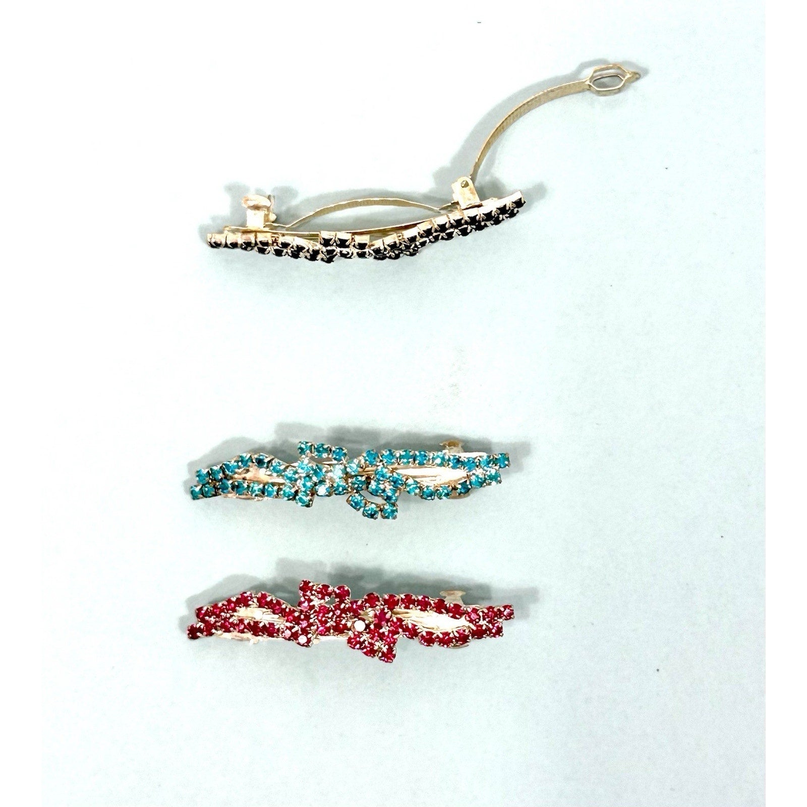 This vintage hair barrette trio are a stylish and elegant accessory for women of all hair types. The gold metal barrette features a rhinestone accent, adding a touch of glamour to casual occasions. With its eco-friendly design, this barrette combines vintage charm with modern materials, making it a versatile and timeless addition to any wardrobe. Perfect for adding a bit of sparkle to your hair accessory collection.